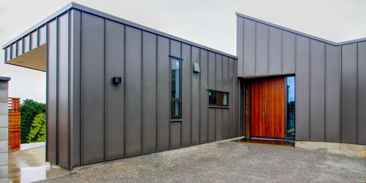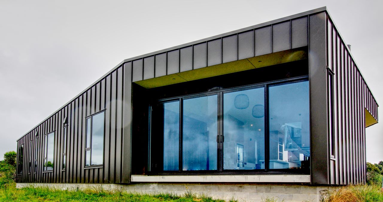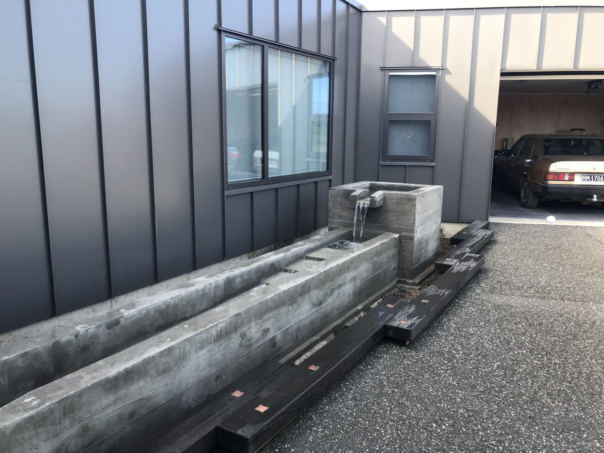 Eurotray cladding. High vaulted ceilings. Cedar T&G. A stunning building. Complex with its cantilevered polished concrete floors, including underfloor heating. Architecturally designed by Wellington architect, Hugh Tennent.