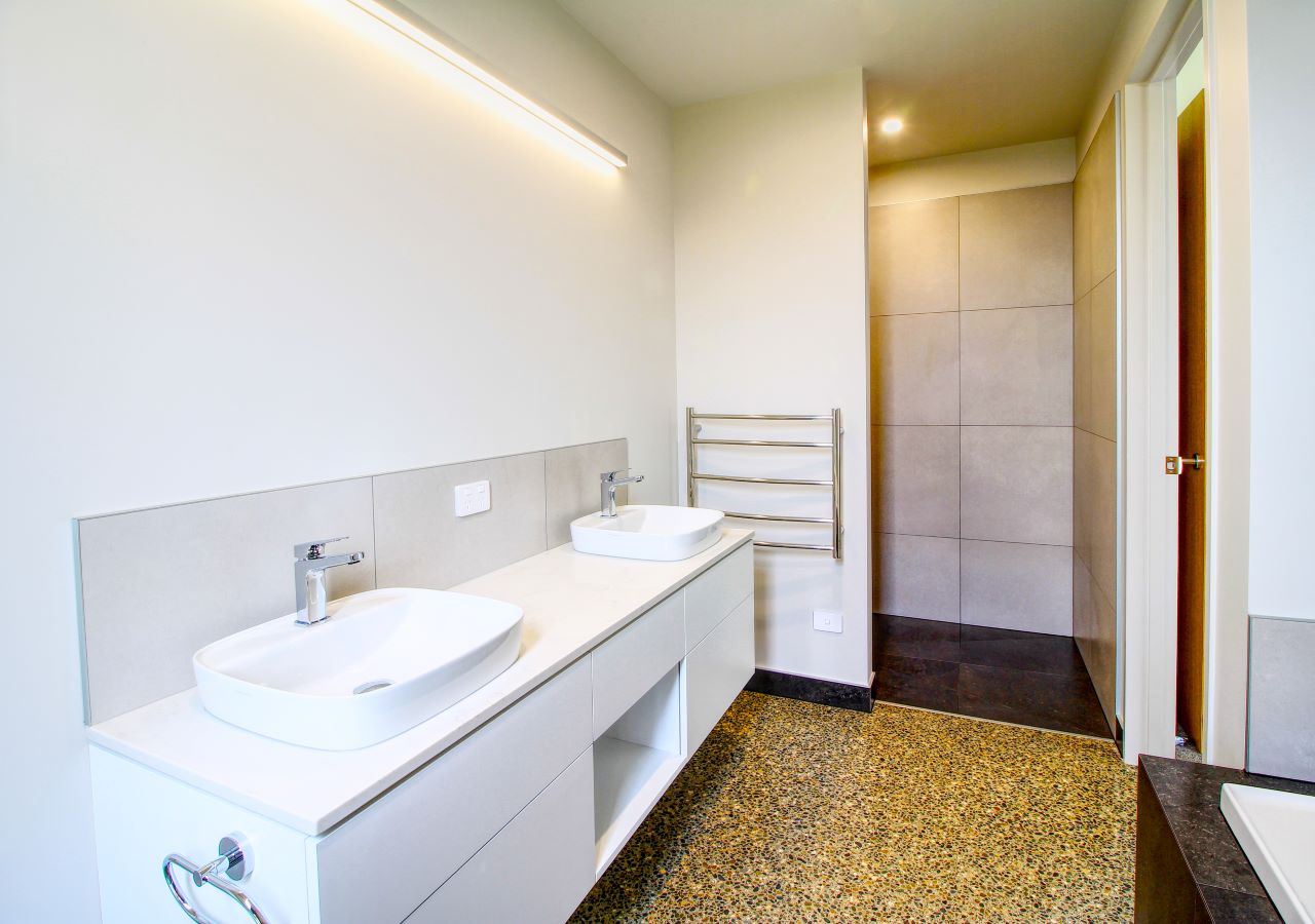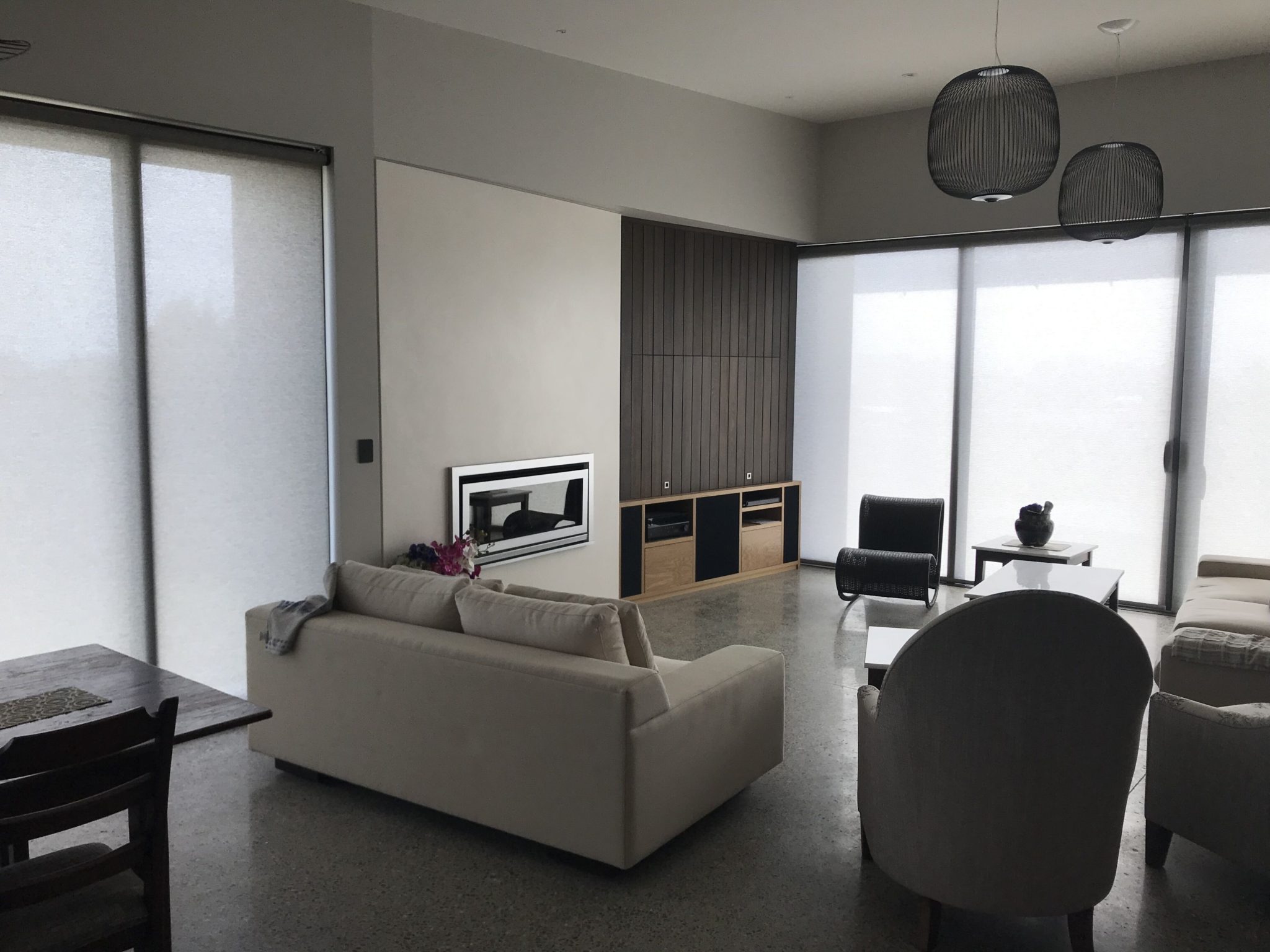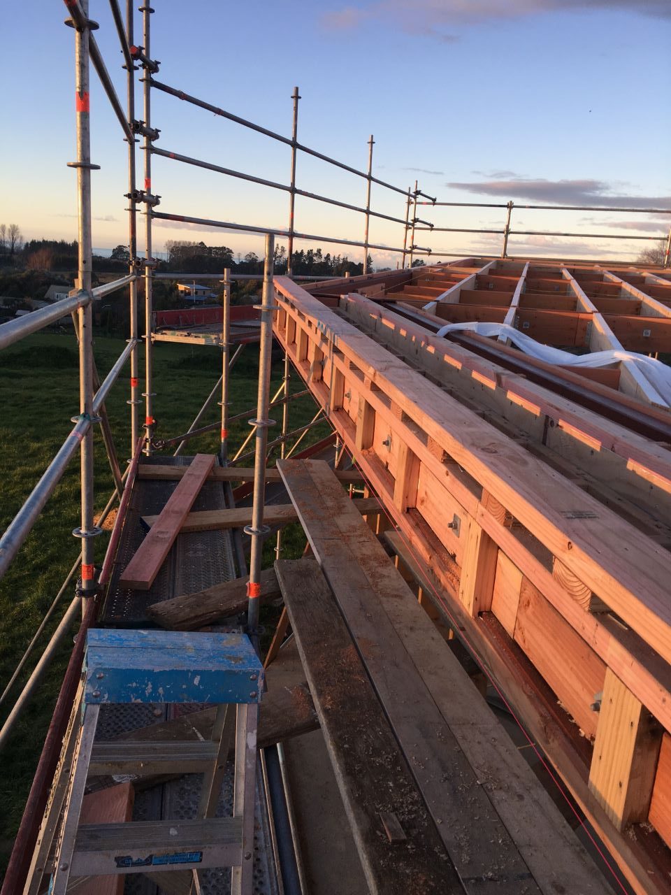 Eurotray cladding. High vaulted ceilings. Cedar T&G. A stunning building. Complex with its cantilevered polished concrete floors, including underfloor heating. Architecturally designed by Wellington architect, Hugh Tennent.